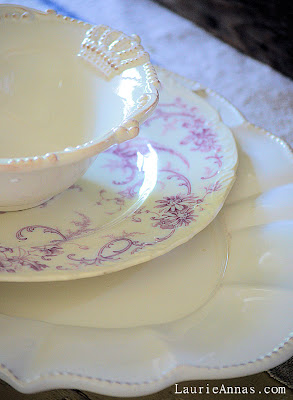A more expensive way to add this lovely pop of color began last year when I bought my first piece of purple /lavender transfer ware.